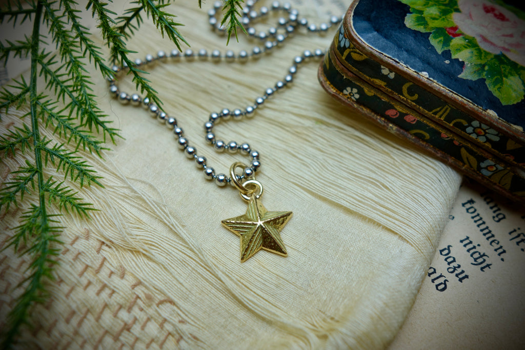 It is made with solid 750 yellow gold (18k gold). Stars are wonderful symbols: they can be our „light in the dark, that guides our way“. Or they help us to keep faith and hope. They also are associated with higher knowledge or enlightenment. You can wear this little treasure alone on a fine silver (offered here) or gold chain or together with other silver/gold charms. Maybe you are looking for a special gift for a beloved friend? This might be the right thing.