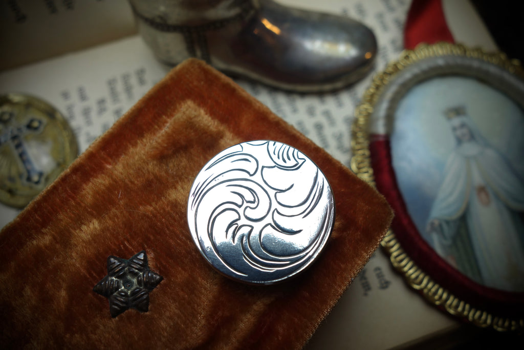This „token“ is meant to be worn in your pocket or wallet. You can take it out and play with it. It is meant to bring you luck. To relax into the knowing of being mortal. We live in a world of forms that will dissolve someday. Knowing that and being good with it, relaxes us. And thus brings joy and luck. This solid 925 sterling silver coin will be your spiritual companion for decades. It is also for people who don’t like pendants or rings, they just can wear this token somewhere in a bag or pocket.