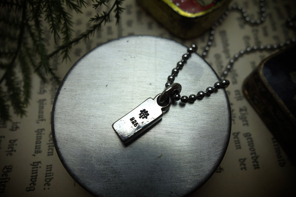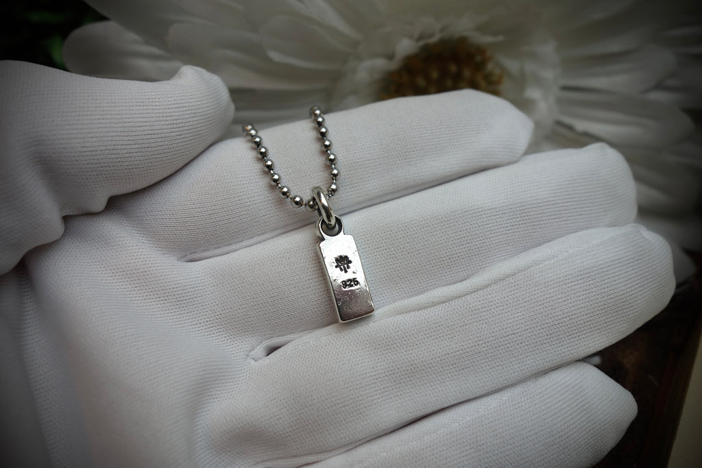 The measurements are approximately 14mm (hight without bail, just square) x 6mm (width) x 3,5mm (thickness). The chain is NOT INCLUDED, you can order it separately in your desired length.
